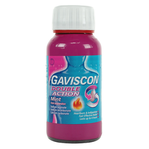 Gaviscon Double Action Liquid – 150ml works in two ways to effectively relieve both heartburn and indigestion by neutralizing stomach acid and forming a raft over the stomach to prevent the acid coming back. It works instantly and last twice longer.