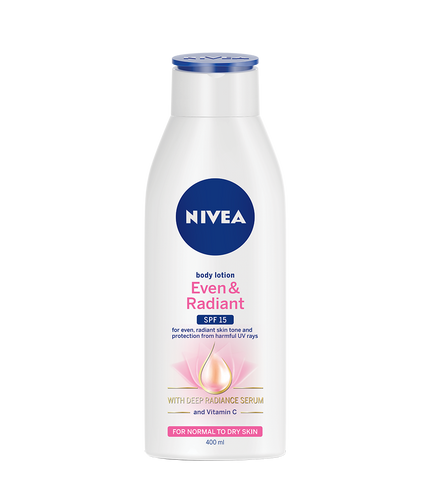 With regular use, NIVEA Even & Radiant Body Lotion, specially formulated with a combination of NIVEA’s Deep Radiance Serum and skin’s own co-enzyme Q10, helps to repair dark and uneven skin patches for visibly radiant, smooth and even skin tone that you can feel. NIVEA’s effective SPF 15 helps protect your skin from harmful UVA/UVB rays that cause skin darkening and damage over time.